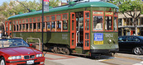 1011 in the Market Street Railway Company’s “zip stripe” livery.
