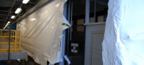 Muni (and Market Street Railway) got the Christmas present of a lifetime delivered today. At 7:30 this morning, SIlk Road Trucking rolled up to the Metro East light rail facility at Cesar Chavez and Illinois Streets and unloaded a special gift, shrink-wrapped in white, just in time for the holidays. Naturally, like little kids, the temptation was too great to resist, so a little corner of the package was torn open to see what’s inside…and oh, my!!!!But we can’t spoil the surprise. For now, let it be said that this one may be unwrapped for the public as soon as next week in a special ceremony. Check back here for details.