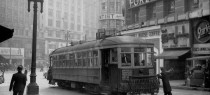 San Francisco Municipal Railway streetcar No. 1 on Stockton Street at Market, the terminal of the original F-Stockton line, Christmas Day 1944. Roy D. Graves photo, Market Street Railway Archives.