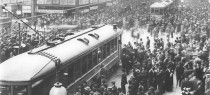 Fifty Thousand San Franciscans came out to cheer the opening of the Municipal Railway on Geary Street, December 28, 1912. Muni Archives.