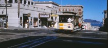 Powell Street Cable Car No. 515 at the Fairmont Hotel, 1959. Bob Davis photo. Click to enlarge.