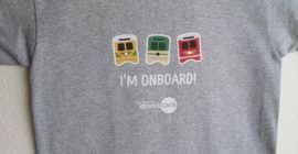 Exclusively ours (like all our tees), this cartoon of Muni’s jaunty F-line streetcars encourages kids to come take a fun ride on a vintage tram on San Francisco’s Market Street, and wear the tee that says so! This Youth tee is made of brushed cotton, locally printed and available in Navy or Light Gray, sizes Small & Medium. Also available in toddler sizes in red. Tram design by Chris Arvin. Read More……