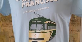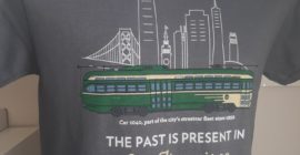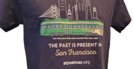 Support Market Street Railway’s advocacy for San Francisco’s priceless vintage fleet of streetcars and cable cars with this unique unisex Crew-neck tee. Tee is available in Gray or Black. 100% cotton, printed locally. Read More……