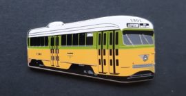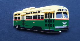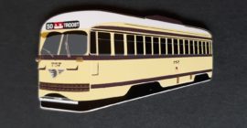 This magnet represents a very special streetcar: the last of almost 5,000 PCC streetcars built new in North America. Learn more about it here. Read More……