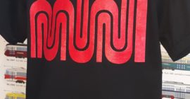 The color of the “worm” was changed to red in 2019 with the introduction of the new Muni charcoal gray operator uniform. We offer this updated MUNI logo tee in black with red logo.This tee is unisex, made of brushed cotton, and printed locally. Also available in Youth sizes. Read More……