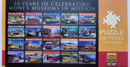 Our exclusive “Museums in Motion” 20-Year Calendar retrospective is now available as our new 300 piece Puzzle! Fun for all ages and fans of Market Street Railway and our vintage streetcars. Great fun testing your skills in matching up those vibrant liveries. This full color puzzle is 300 pieces, measures 12″x16″ when complete. Perfect for a small workspace! Read More……
