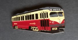 This image honors Philadelphia Suburban Red Arrow PCCs that ran in service from 1949-1982. Pin measures 1.625″ across and attaches with post & rubber clasp. Larry Hodson design. Read More……