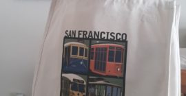 Celebrate our vintage streetcars with San Francisco Railway Museum’s full-size gusseted grocery tote. Canvas tote measures 14″h x 13″ x 7″ and is 100% cotton. Premium quality construction with a 6″ x 8″ image of four of our beloved trolleys. Durable fabric and machine washable. Read More……
