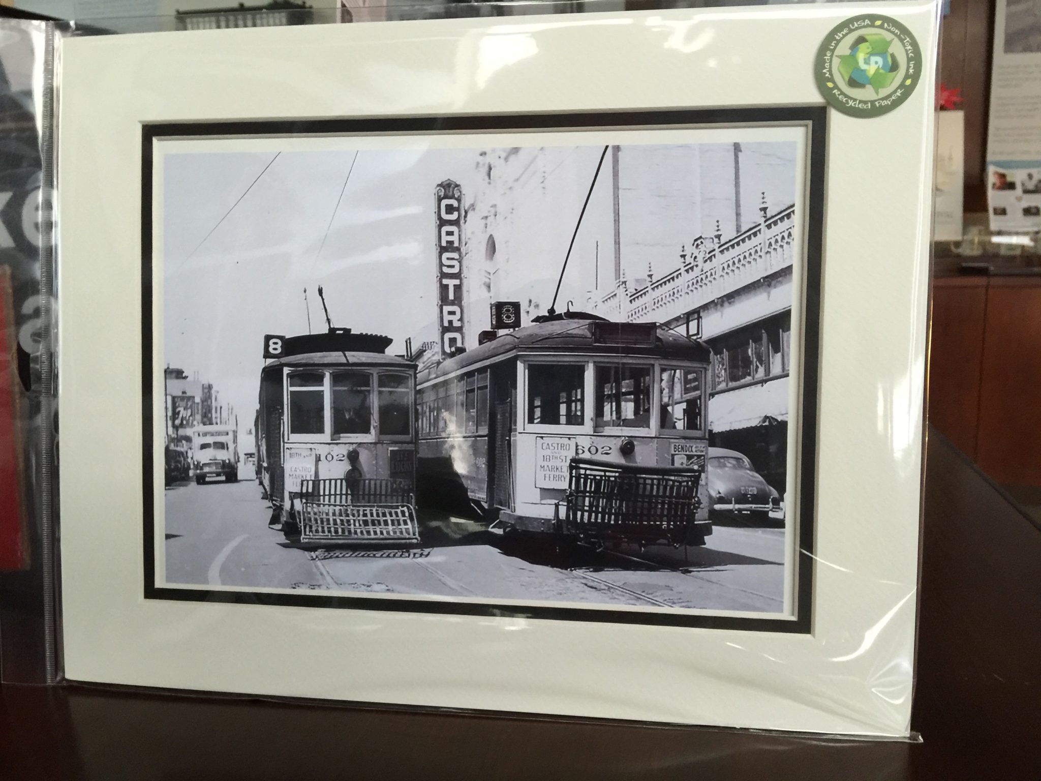Just in time for holiday giving to your San Francisco history-loving friends, eight great new images from the Market Street Railway Archives. You can view them all here. These are quality 8″x10″ prints in double 11″x14″ mattes, perfect for economical ready-made frames in that standard size.
