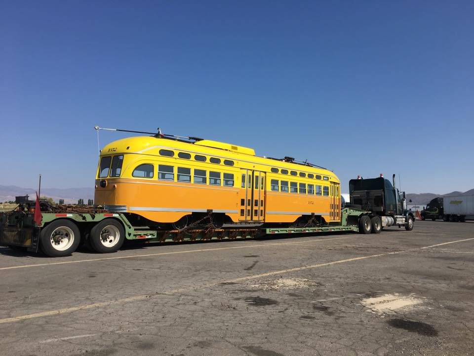 The truck that dropped off 1052 is picking up “Green Hornet” Car 1058 today, the last of the 13 single-end cars in this contract to go to Brookville. Of the original F-line fleet, only double-end Car 1007 remains in San Francisco, and it will head east when the next car at Brookville comes back. We’ll have more information about the double-end PCCs in this contract in a future post.