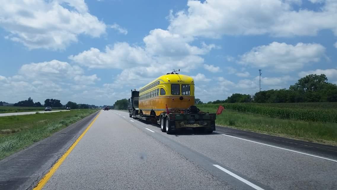 By whatever name, our network of relentless spies has been tracking the streetcar’s progress back to Muni. That photo collage on Facebook by Cary TIntle at the top captures the 1052 leaving Brookville (a charming small town, by the way) on July 19. Below, a shot crossing the wide open spaces of Iowa on July 21.