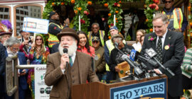 Cable cars celebrated their 150th birthday on August 2 with a lively celebration at Market and Powell Streets. The event commemorated inventor Andrew Hallidie’s first cable car trip, down Nob Hill on Clay Street, on August 2, 1873.