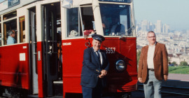 Editor’s Note: This article, by Marshall Kilduff, appeared in the San Francisco Chronicle on March 15, 1979. Maurice Klebolt went on to become a board member of Market Street Railway and one of the forces behind the Historic Trolley Festivals from 1983-87 that led to the permanent F-Market and Wharves vintage streetcar line.