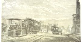 August 2, 1873 — In the wee small hours of a misty San Francisco night (they didn’t call the month “Fogust” back then, but it was), a new type of transit was about to be inaugurated. An endless wire rope clattered beneath Clay Street. An odd open vehicle sat on the rails at the top of the hill. Standing by was Andrew Smith Hallidie, a Scot who had experience using wire rope in the mining business, and was part of the team promoting this new technology, aimed at making horsecars obsolete.