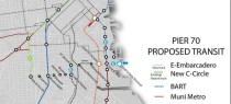 Detail from Ben Caldwell’s presentation on removing I-280, showing E-line extension around Pier 70 and onward to the 22nd Street Caltrain station.