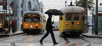 The F-line will be operated solely with buses on Saturday, February 22, so that a number of projects can be carried out on Market Street. This includes completion of the removal of the old switches that led to and from the now-vanished Transbay Terminal (specifically, the switch at Fremont and Market), plus utility work at Spear and Market and crosswalk repair at Third and Market. F-line buses will operate on Market, except between First and Fremont inbound, where they will detour via Mission. Trolley coaches will be replaced by motor coaches along Market, as the overhead wires will be deenergized between Tenth and Steuart.