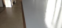 The first day’s progress refinishing our museum floor, on the window side of our embedded "tracks." Brian Leadingham photo. Click to enlarge.