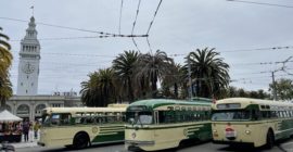 The wait was worth it. Thirty months of pandemic, service shutdowns, and struggles to get F-line and cable car service going again. After all that, it was time for a celebration. Thousands of San Franciscans and visitors agreed, coming out on June 4 to ride or watch vintage streetcars, unique cable cars, and Muni buses spanning 60 years of service.