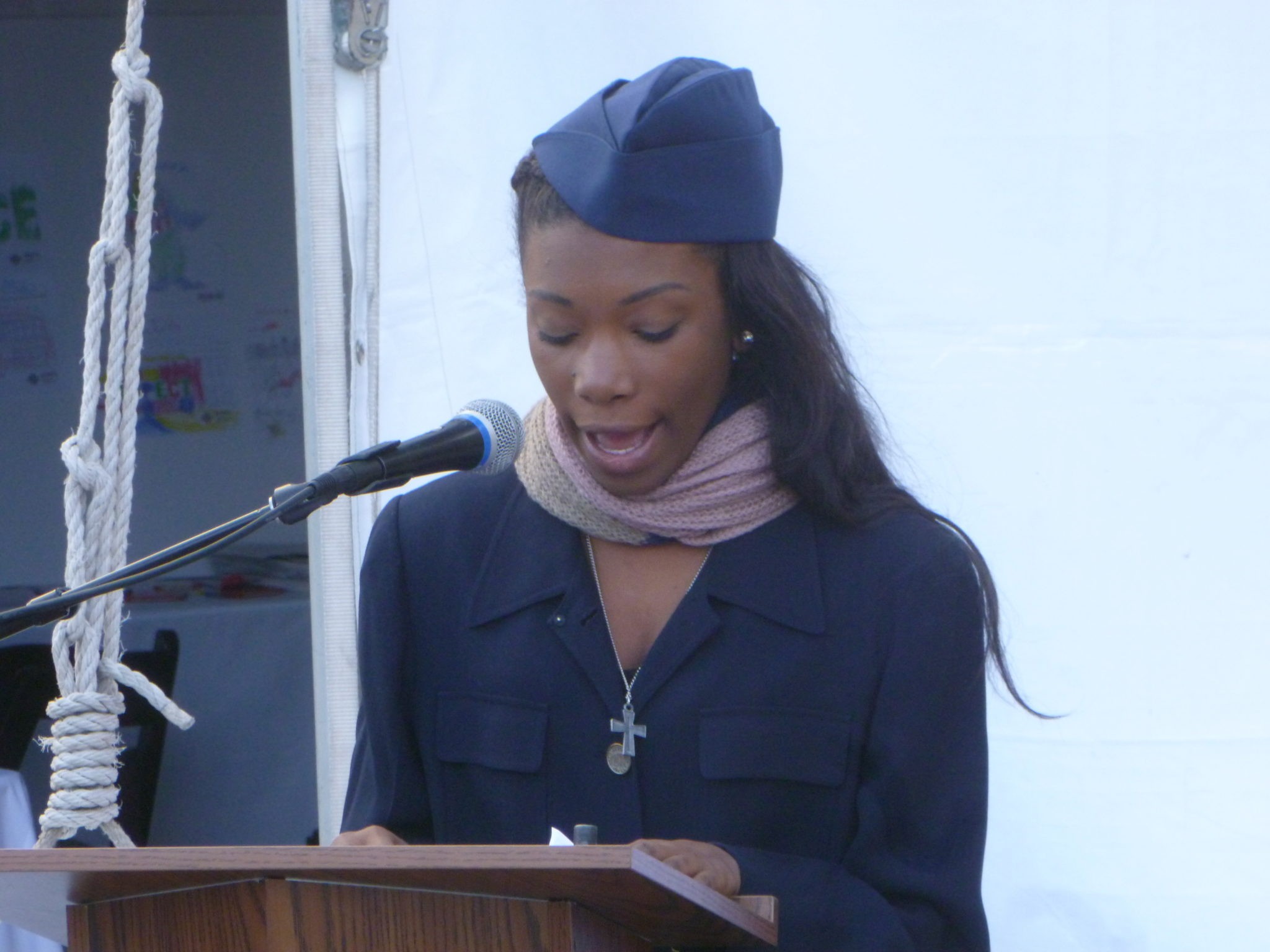 Adding greatly to the historic context of the day, Saint Ignatius Senior Johnnae D. Saunders read Maya Angelou’s story of how she, when even younger than Johnnae, persevered to become San Francisco’s first African-American female streetcar conductor in 1944.
