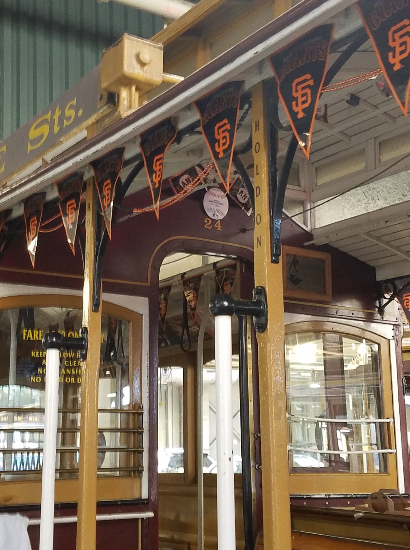 By the way, the Giants flags also appropriately appeared on Powell Cable Car 24, which is dedicated to the greatest Giant, Willie Mays. Val Lupiz did a dandy job decorating Car 24 with help from James Giraudo, Jeremy Whiteman, and Frank Zepeda!