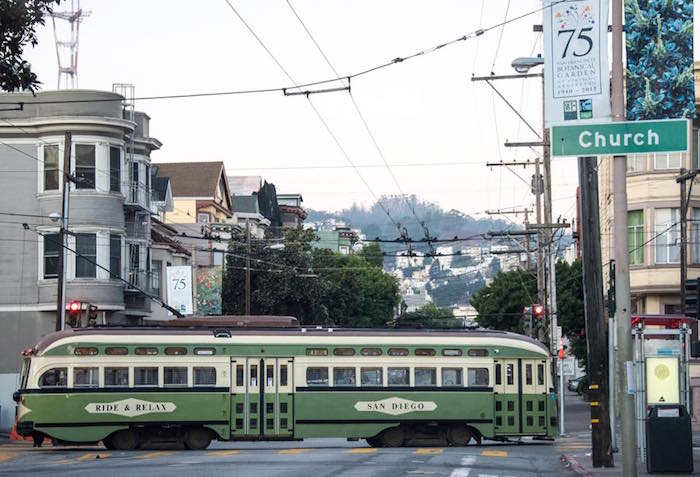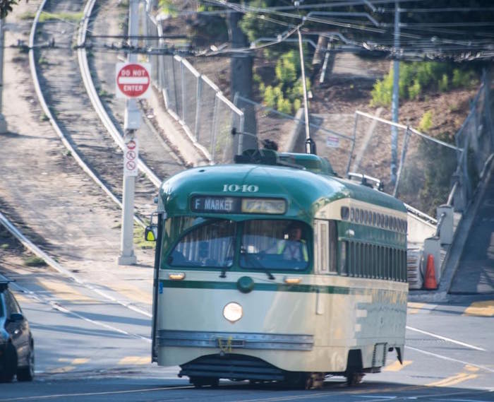 The historic cars’ trips going in and out of service again follow the J-Church line tracks from Balboa Park to 17th and Church. Ace photographer Curley Reed captured some great shots of the old cars on the J the past few days.