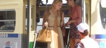 Cate Blanchett in the doorway of F-line streetcar No. 1060 during filming of Woody Allen’s new movie in San Francisco, August 24, 2012. Photo copyright Rick Laubscher.