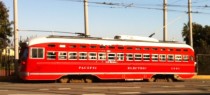 What a perfect Valentine’s Day gift to San Francisco. The return of a PCC whose livery has stolen a lot of hearts with its appropriate-for-the-day red coloring. Car 1061 is painted in tribute to Pacific Electric, the legendary Southern California system that once stretched from San Bernardino to Santa Monica, and from the San Fernando Valley to Newport Beach. P-E only had a handful of streamlined PCCs in its enormous fleet, and they were unique: double-ended, with front and center doors on each side, like no other PCCs built. They had no standee windows. They ran almost exclusively on the Glendale-Burbank line. When P-E was closing its operations, they were sold to Argentina. None survives today.